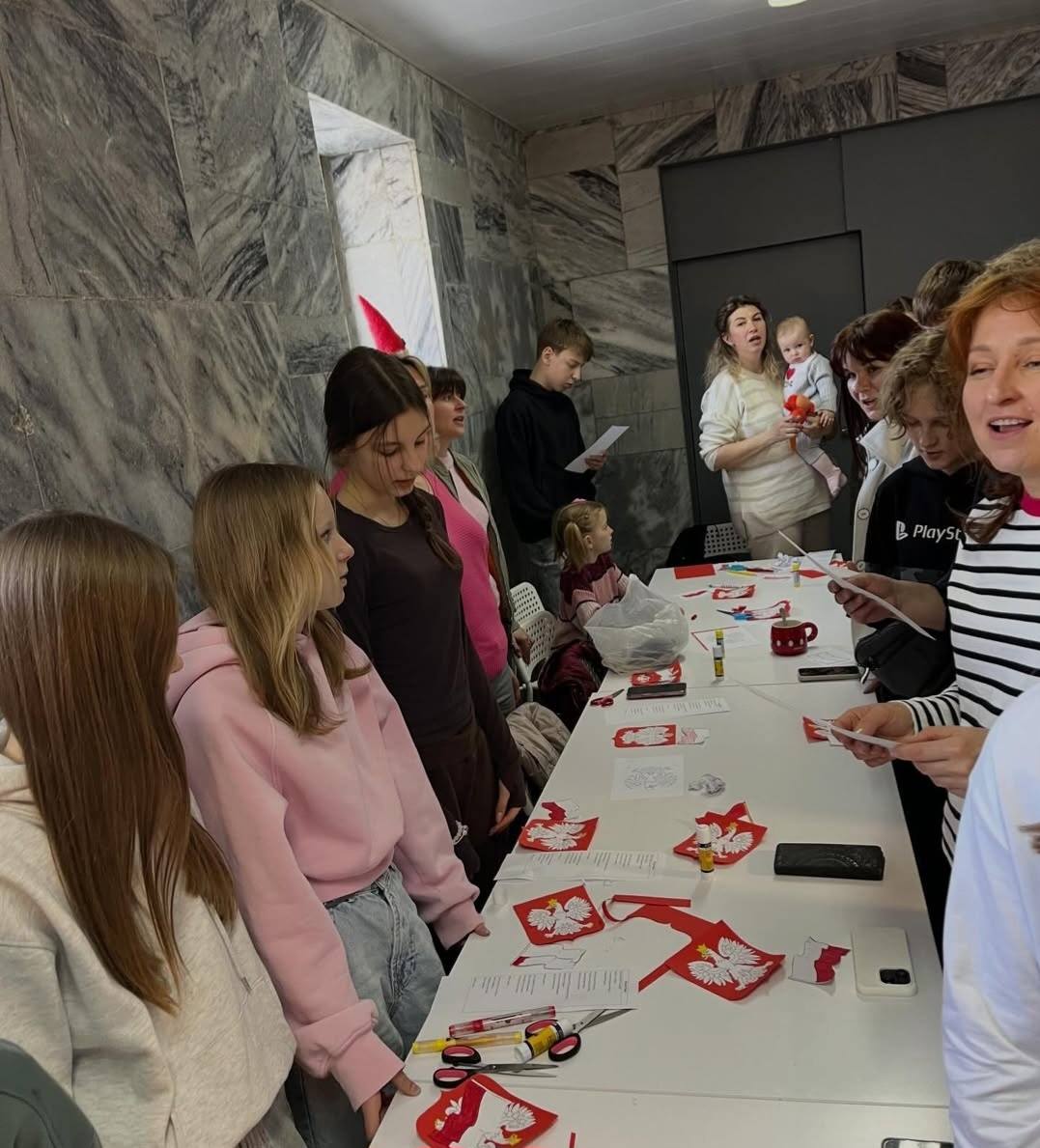 Po części edukacyjnej nadszedł czas na ekspresję artystyczną. Warsztaty przekształciły się w kreatywne forum, gdzie dzieci i dorośli, używając różnych technik plastycznych, tworzyli własne interpretacje symboli narodowych. Powstały prace pełne barw, inspirowane polskim krajobrazem, historią i kulturą. Każde wykonane dzieło było unikalnym wyrazem osobistej więzi z krajem przodków oraz dumy z własnych korzeni.