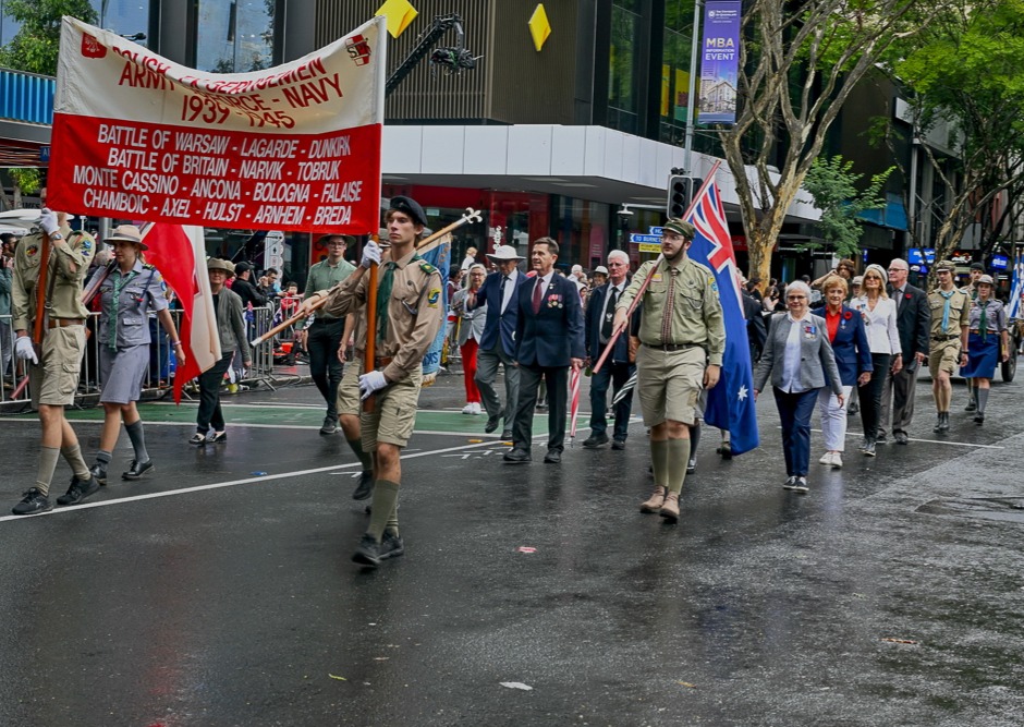 Polska społeczność w Brisbane, jak co roku, z wielką godnością włączyła się w te uroczyste obchody, podkreślając więź łączącą polską i australijską tradycję wojskową. Ulicami Brisbane przeszedł biało-czerwony poczet, reprezentowany przez liderów organizacji polonijnych oraz młodzież harcerską.